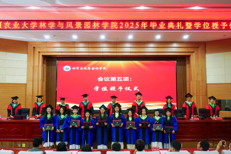 林学与风景园林学院2025年毕业典礼暨学位授予仪式在学院党委书记谢军的深情寄语中圆满落幕。书记向毕业生提出 “向下扎根、向上生长、向阳而行” 的深情期许,鼓励学子投身基层与国家建设前沿,以实干和奋斗践行使命担当。新时代新征程,农大学子将带着母校的期许,在实现中华民族伟大复兴的赛道上奋力奔跑,书写属于他们的青春华章。