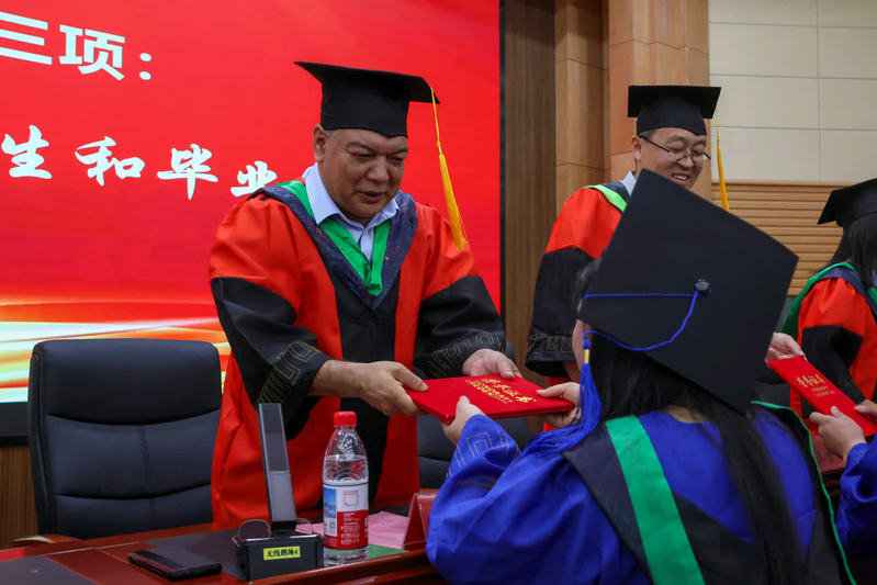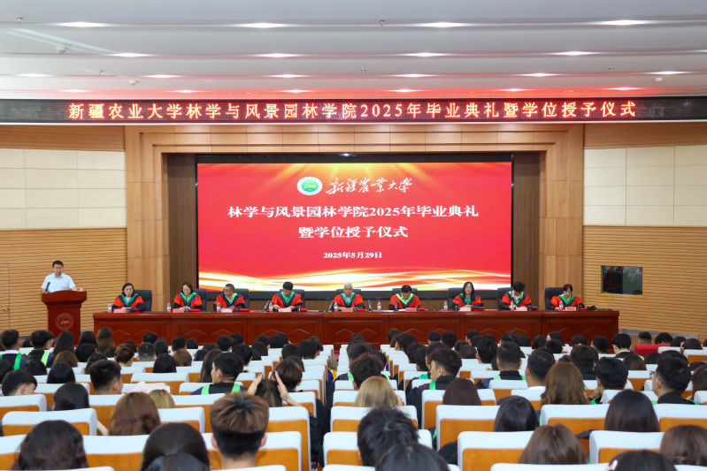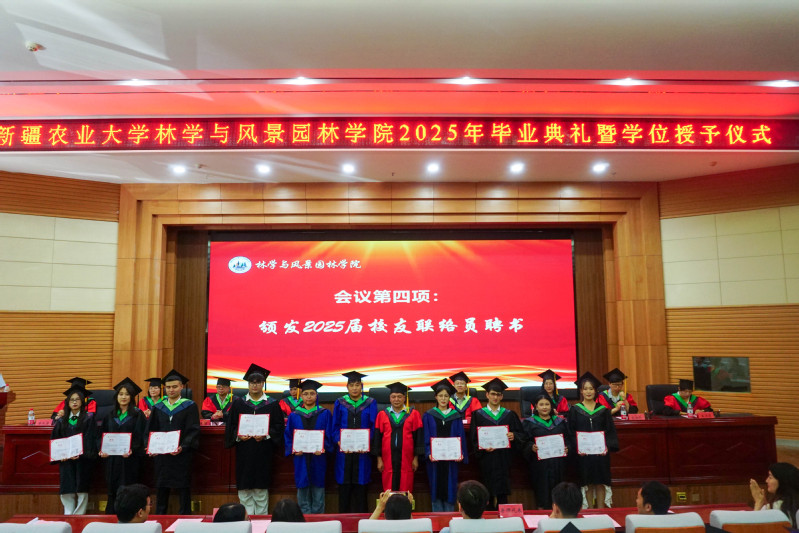 院长阿地力·沙塔尔的致辞,如温暖而有力的风帆。他向大家提出三点殷切期望:第一,希望你们做“绿水青山”的守护者;第二,希望你们做“勇攀高峰”的开拓者;第三,希望你们做“胡杨精神”的传承者。同时,他对毕业生们你们嘱托道:“愿你们成为‘种子’,把论文写在新疆大地,让绿色梦想在天山南北生根发芽;愿你们成为‘桥梁’,在人与自然、传统与现代、边疆与内地之间,搭建和谐共生的纽带;愿你们成为‘旗帜’,在强国建设、民族复兴的征程中,彰显新疆青年‘功成必定有我’的担当!”他希望大家以青春之我、奋斗之我,在建设美丽中国的伟大征程中,书写无愧于时代、无愧于人民的精彩篇章!