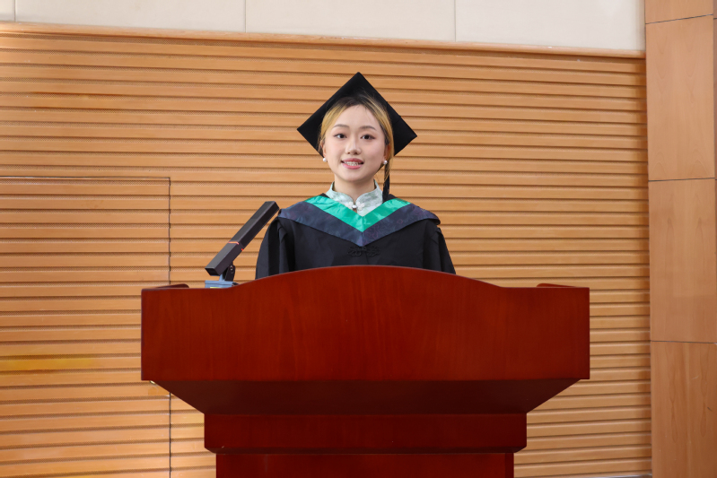 大二年级学生徐嘉瑶讲到:“在林园,我们见证了学长学姐的拼搏。我们会以你们为榜样,努力学习实践。离别之际,祝学长学姐前程似锦,愿你们常回母校,这里永远是温暖港湾!”