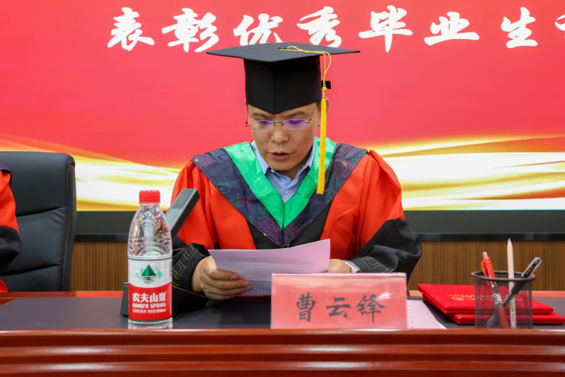 曹云锋副院长宣读优秀毕业论文(设计)表彰决定。他们的论文里,有实验室中反复推敲的数据,有野外调研时踏遍山河的足迹,更有对专业领域的深度思考。这份荣誉背后,是无数个日夜的专注与坚持,而他们在学术探索中展现的钻研精神,正如灯塔般,为学弟学妹们照亮求知之路,成为可触可及的青春标杆。