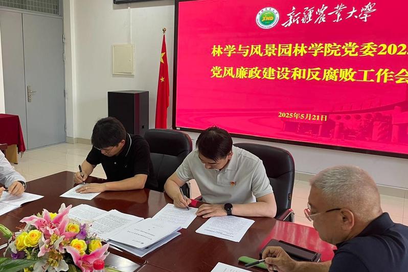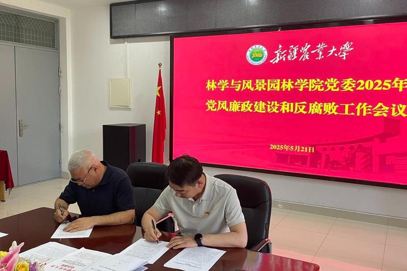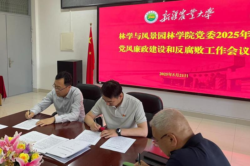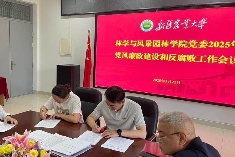 会上,全体党员干部现场签订了《2025年林学与风景园林学院党员干部廉洁从政承诺书》,进一步强化廉洁自律意识。随后,党委书记谢军分别与各分管领导、党支部、系部、行政办公室及实验中心负责人签订了《2025年党风廉政建设目标责任书》,层层压实责任,确保党风廉政建设各项任务落到实处。
