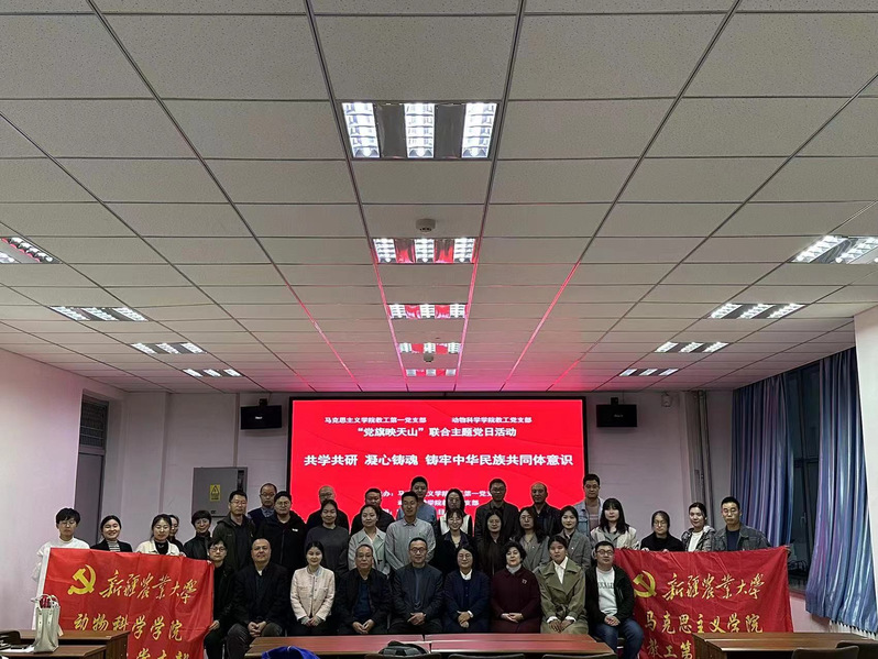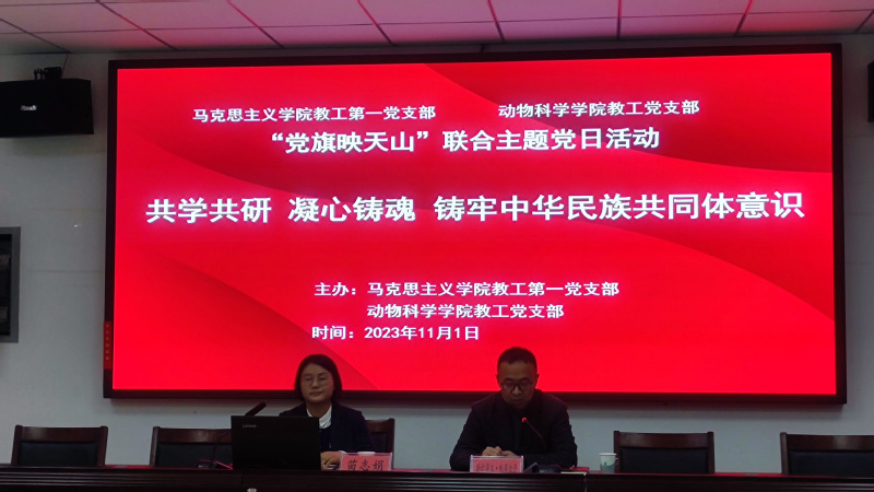 本次主题党日活动在动物科学学院报告厅举行,由动物科学学院党委书记斯坎得尔·依布拉音主持,马克思主义学院教工第一党支部与动物科学学院教工党支部全体党员同志参加。