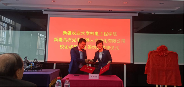 为了更好地提高星空彩票体彩版机电工程学院机械设计制造及其自动化、农业机械化及其自动化、电气工程及其自动化等专业学生的实践能力,提高教育和教学质量,推进校企协同育人联合培养,学院于2020年9月与新疆名石光电机器人自动化有限公司签订了校企合作协议,拟在从以下几个方面开展长期合作:(1)建立校外实习基地,开展机械设计制造及其自动化、农业机械化及其自动化、电气工程及其自动化等专业学生的教学实习工作;(2)通过多期学生实习过程和基地初步建设,为农业机械化及其自动化一流专业建设和建设自治区级或国家级“智能装备管理与运用”大学生校外实践教育基地打下基础;(3)开展教师的实践技能培训,提高教育水平;(4)实现“产学研”一体化的结合,包括工业机器人专业技术人员培训、联合技术攻关与项目申报、共建机器人工程技术中心等。