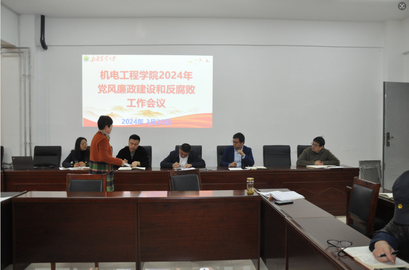 3月20日下午,机电工程学院2024年党风廉政建设和反腐败工作会议在学院三楼会议室召开,机电学院领导班子、全体教职工参加了会议,会议由机电工程学院党委副书记、纪委书记李丹主持。