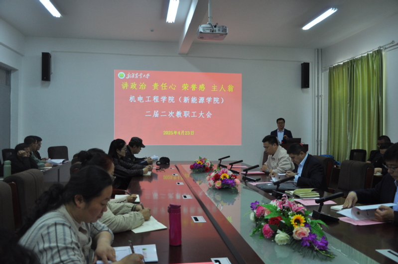 2025年4月23日下午,机电工程学院(新能源学院)第二届第二次教职工大会在庄严的国歌声中隆重开幕。学院党政领导班子成员及全体教职工出席本次会议,会议由学院党委副书记李丹主持。
