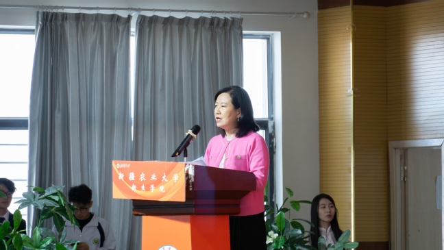 孙英作总结讲话,祝贺新生顺利度过入学百天、实现阶段性成长,并结合学院发展肯定2025级新生的青春活力与担当,鼓励新生以百日为新起点,立大志、勤学习、重实践、修品德,在集体中互助共进。
