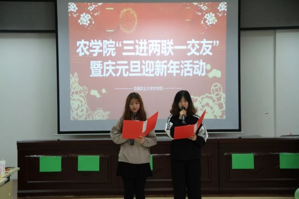 参加本次活动的有农学院团委书记李亚杰,辅导员陈梦媛,第二十七届团委、学生会团委副书记彭媛,学生会主席聂凌帆,副主席巴提玛·叶尔肯别克以及全体大一大二“三进两联一交友”的老师和学生。