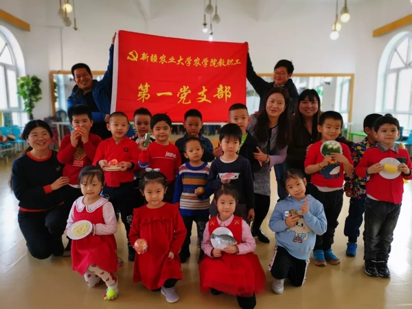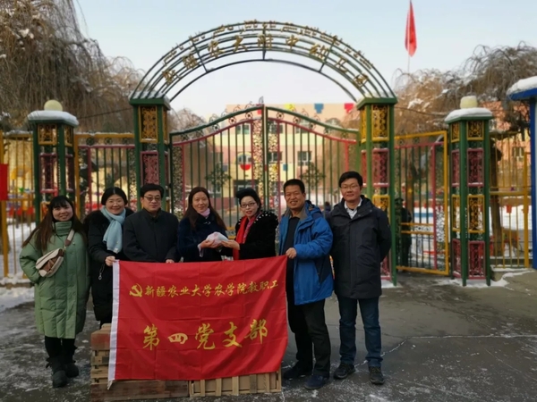 为增强党支部建设,发挥党员模范带头作用,弘扬中华民族爱心帮扶的传统美德,向初步建立世界观、人生观、价值观的幼儿园小朋友传递关爱和温暖。成功入选首批自治区高校“双带头人”教师党支部书记工作室的教职工第四党支部联合教职工第一支部开展活动。2019年12月31日,在孙英书记带领下赴农大幼儿园开展了关爱儿童献爱心捐赠活动。