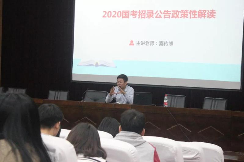 2020国考将至,为帮助农学院全体大四学生尽快调整状态,正确客观地了解到现在的国考形式政策,我院于2019年10月20日18:00在学术报告厅开展公务员考试政策讲解讲座。