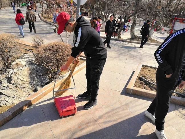 活动中,广大志愿者发扬不怕苦、不怕脏、不怕累的优良作风和团结协作精神,以饱满的热情进行了公园清扫,清捡白色垃圾、枯枝败叶,倡导文明健康生活方式。
