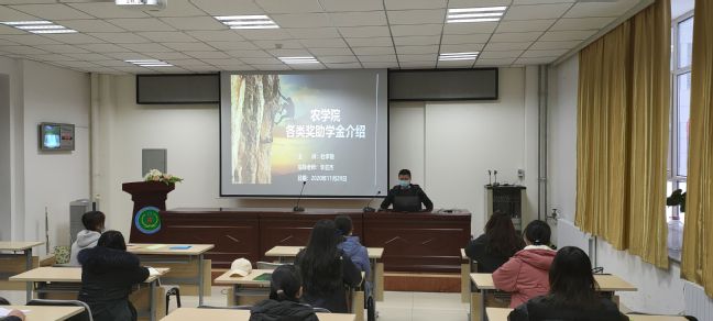 为进一步推进优良学风建设,树立刻苦努力、奋发向上的优秀学生典型,引导广大学生向优秀学生看齐,发挥奖助学金获得者的榜样力量,激励学生们刻苦学习,提升自身综合素质,营造更浓厚的学习氛围,农学院于2020年11月29日举行“资助政策”讲座,讲座由农学院辅导员杜孝敬主持,大一各班全体班委参加会议。