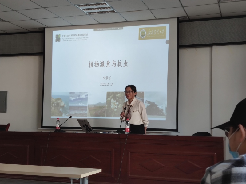 2021年9月14日,在农学院多功能会议厅开展了“植物激素与抗虫”的学术报告交流会。中国农业科学院(深圳)农业基因组研究所李素华研究员做了报告,农学院副院长耿洪伟教授主持,此次学术报告交流会线上线下同时进行。