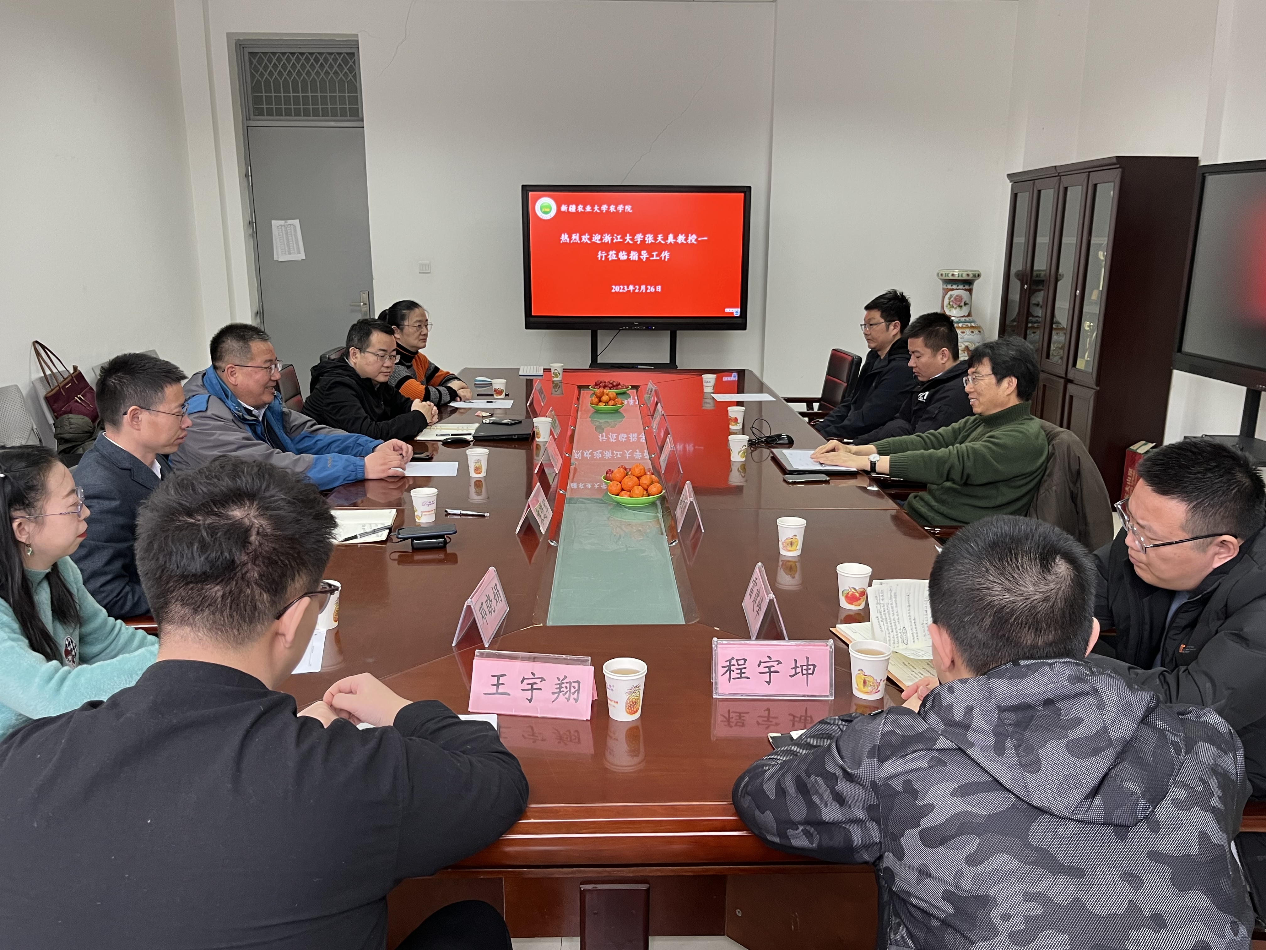 2023年2月26日,农学院“天池特聘教授”浙江大学张天真教授一行莅临我院进行座谈交流,农学院陈全家院长、耿洪伟副院长、援疆干部袁道军副院长、植物遗传育种系系主任苏秀娟和部分教师、博士参加了座谈会。