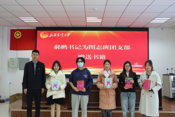 郝鹏书记向学生代表赠送红色书籍并寄语:相信在同学们的共同努力下,新疆的农业现代化必将取得更加辉煌的成就,希望大家为祖国的繁荣昌盛和新疆的繁荣发展贡献自己的青春力量。