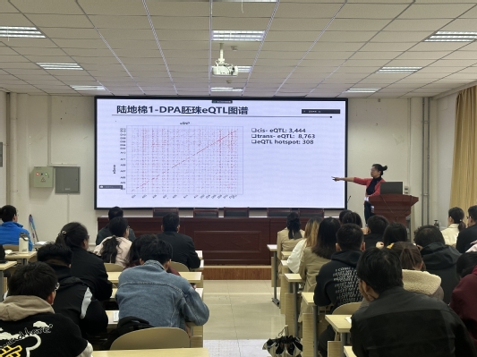 2024年4月26日,浙江大学农业与生物技术学院关雪莹教授应邀在农学院多功能厅A122作“棉花种子发育与活力的遗传解析”学术报告。学院植物遗传育种系全体教师及相关专业研究生聆听报告,报告由学院副院长耿洪伟教授主持。