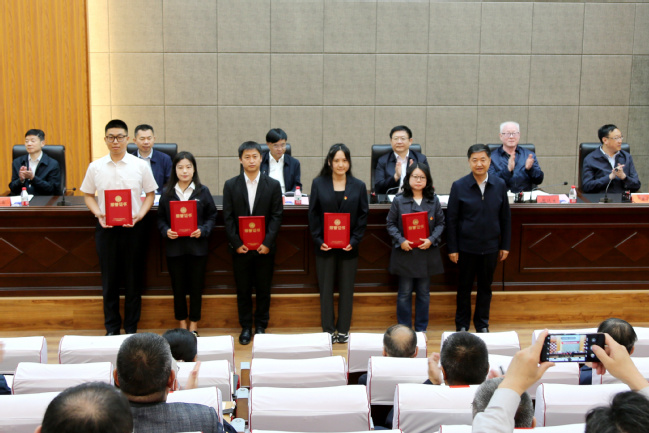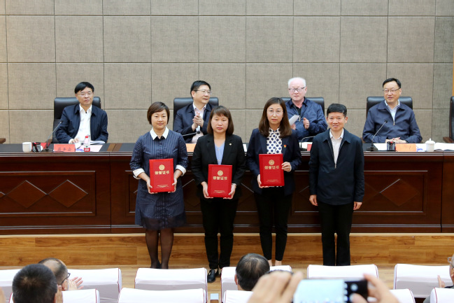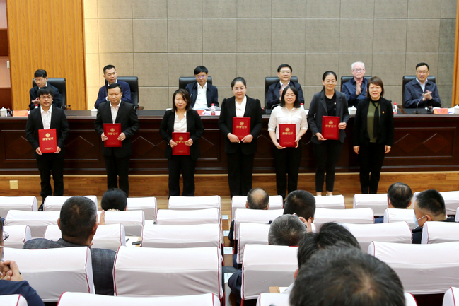 会议第一阶段,校党委副书记、副校长郑英宁宣读了“十四五”以来学校获得各级各类人才称号人员名单,谢树青、周远生、蒋平安等为各类人才颁发了聘书、证书。
