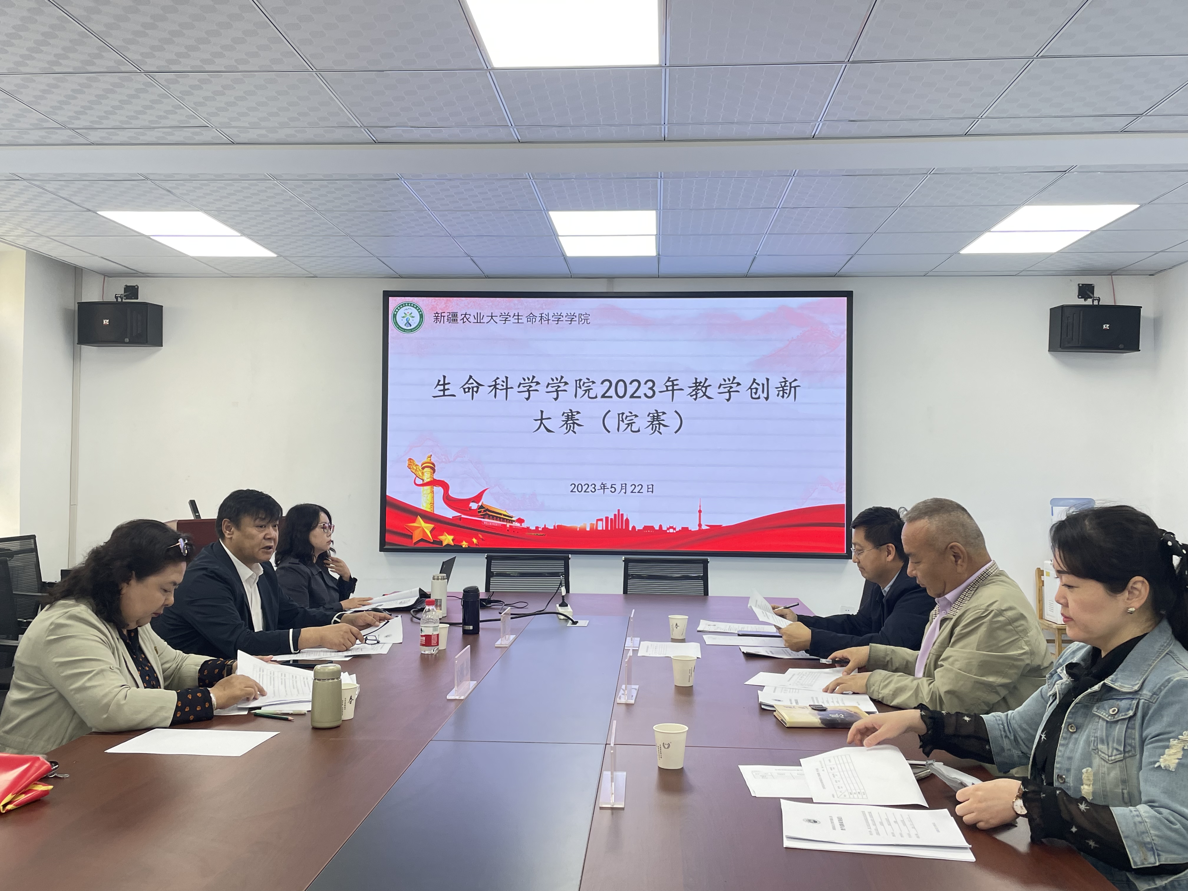 为把学习贯彻习近平新时代中国特色社会主义思想主题教育引向深入,以主题教育强化理论学习指导教学实践,推进教育教学高质量发展,鼓励广大教师深入开展教学和实践教育教学改革,使思政教育、素质教育、创新教育、能力培养与专业教育紧密结合,生命科学学院于2023年5月22日举办2023年教学创新大赛院赛。本次竞赛由生命科学学院纪委书记、副院长安尼瓦尔·库尔班副教授、时磊教授、吐尔逊娜依·热依木副教授、迪利夏提·哈斯木副教授、苏豫梅副教授担任评委组专家,生命科学学院教学秘书赵晶担任秘书。