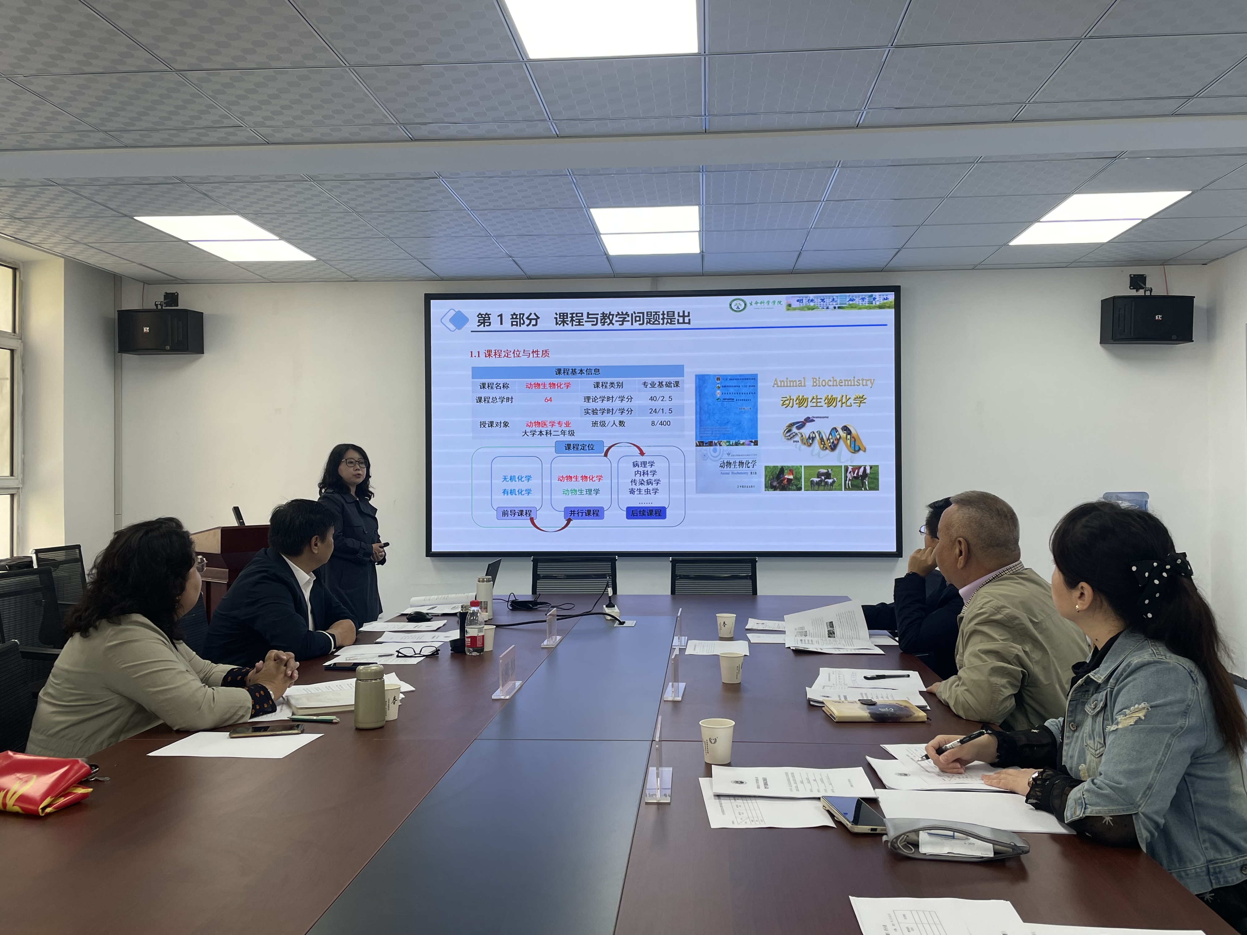 阎晓菲老师做了“《动物生物化学》课程教学创新改革与实践”的汇报,分别从教学问题提出、课程创新理念与目标和课程创新与改革途径等方面介绍了课程相关情况。