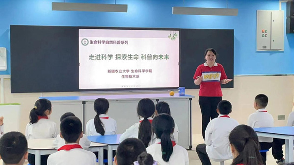 2023年9月19日,是2023年全国科普日,今年的活动主题是“加强科学传播,提高全民素质”。为积极响应全国科普日活动号召,贯彻落实二十大精神,进一步宣传生命科学知识,扩大星空彩票体彩版生命科学学院社会影响力,当日生命科学学院教工第二党支部教师代表姚正培老师、苏豫梅老师、夏木斯亚·卡坎老师以及本科生党支部生物技术专业的5位学生代表一同走进乌鲁木齐第27小学,与27小学六年级1班及4班的120位同学们,共同开展了一场丰富的以“提升全民科学素质,助力科技自立自强”为主题的科普学习活动。