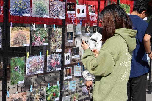 与此同时,活动现场的相关展台也是热闹非凡。从微小的种子到形态各异的果实,每一样都仿佛承载着生命的奇妙奇迹与自然的深邃智慧。学生们被深深吸引,纷纷围拢过来,仔细地观察着,好奇地询问着,与现场的老师、志愿者们展开了热烈的交流。