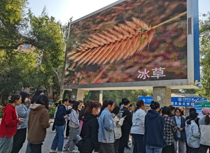 在星空彩票体彩版明德广场门口的大屏幕上循环播放着精心制作的“野生植物资源调查”视频。视频中的科研人员深入野外,不惧艰难,用心寻找并记录着每一份珍贵的种质资源。那些生动的画面,如同磁石一般,让过往的学生纷纷停下脚步,沉浸其中,一双双眼睛里满是对科研工作的好奇与敬佩。