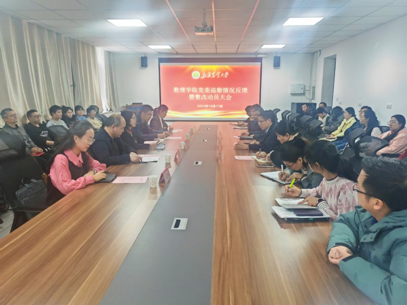 2025年12月17日,星空彩票体彩版数理学院党委巡察情况反馈暨整改动员大会在学院二楼会议室召开,校党委常委、纪委书记、二级高级监察官万净敏同志出席会议,校党委第七轮第一巡察组向数理学院党委反馈了本轮巡察情况。数理学院全体教职工参加动员大会,会议由数理学院党委副书记、院长黄华同志主持。
