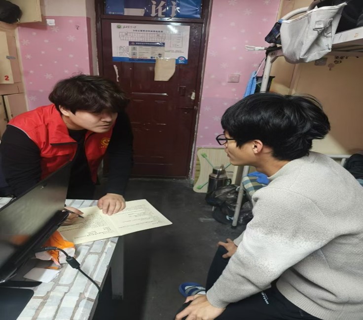 面对这一问题,我院学生会权益部志愿者展现出了他们的智慧和爱心。他们利用生活中的小常识,对松动的宿舍门进行了加固处理。通过他们的努力,宿舍门恢复了正常状态,为同学们重新营造了安静、温暖的睡眠环境,让大家可以在忙碌的学习之余,拥有高质量的睡眠。