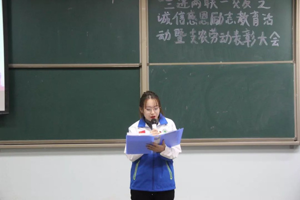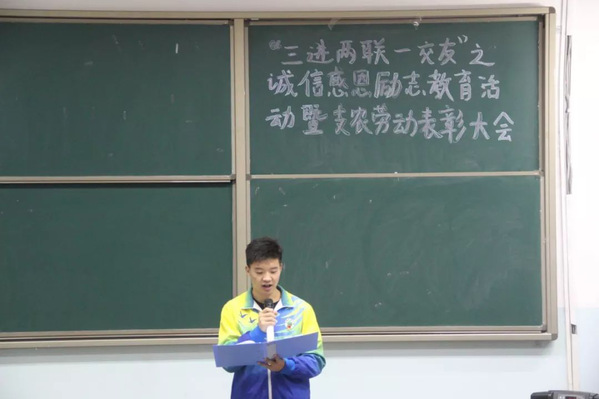 活动在激昂的国歌下拉开序幕。主持人宣布活动正式开始。通过开展“诚信感恩励志教育活动暨2019年支农劳动表彰大会”积极引导学生树立良好的学习风尚,诚信处世态度,提高学习的主动性。让学生认识到考试作弊的危害性,严格遵守考试规章制度,严肃考风校纪。同时鼓励学生刻苦学习,奋发向上,崇尚科学,勇于创新。希望通过此次大会让大家意识到诚信考试的重要性,并以积极正确的态度来迎接期末考试,为本学期画上圆满的句号。