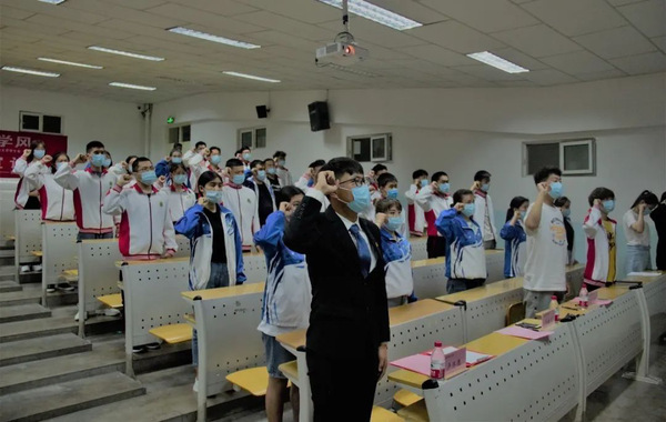 随后有领宣人在前面,带领大家,举起右拳,进行庄严宣誓!