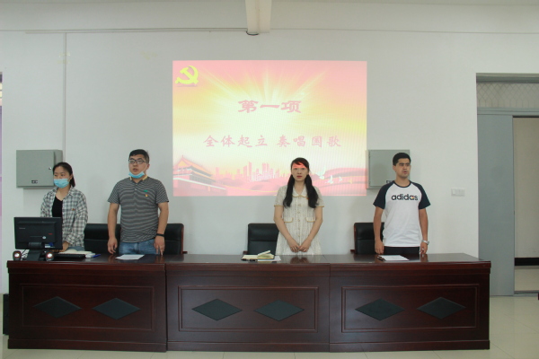 艾尔夏提·吾买尔同志宣读了学院党委审批通过的新发展党员名单,与会老师为新发展党员逐一佩戴党徽。学生第一党支部书记鲁德渊带领十三名新发展党员面向党旗,庄严宣誓。