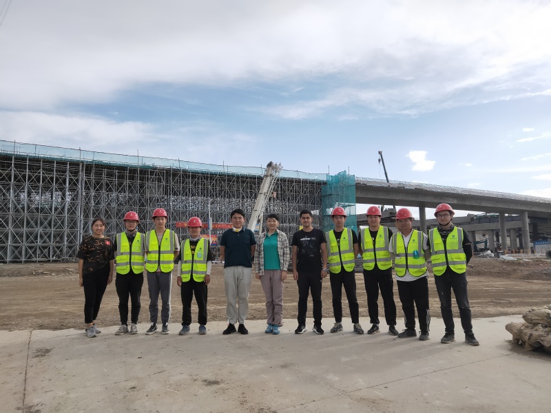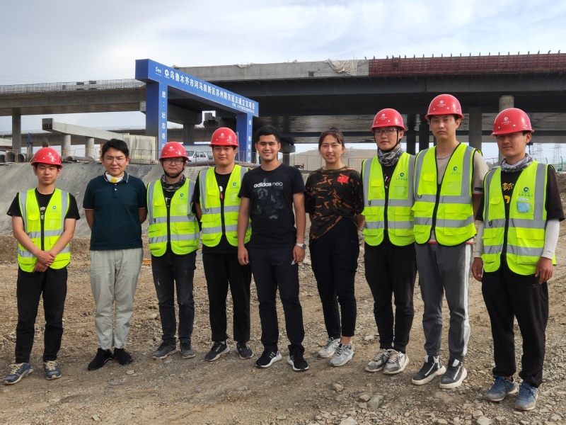 落实人才培养方案,提高人才培养质量,进一步加强学生实习管理,了解学生在外实习的基本情况,6月27日下午,交通与物流工程学院副院长唐茜、交工172班班主任艾尔夏提·吾买尔老师赴太平洋建设乌鲁木齐东二环苏州路互通式立交项目三个标段看望正在实习的交通工程172班同学。