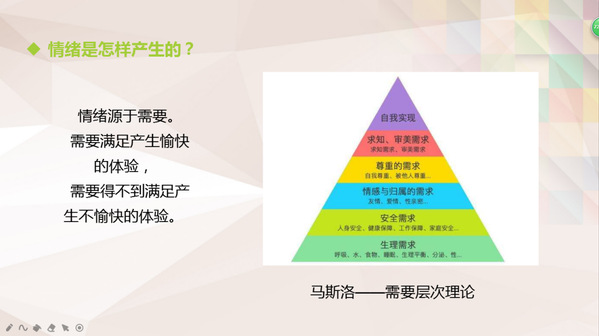 讲座主要通过对情绪的认识和如何管理情绪两方面开展。老师讲到,情绪的认识是人们对客观事物态度反应和内心感受,是一种主观而真实的个人体验;情绪的产生源于需要,需要满足产生愉快的体验,需要得不到满足产生不愉快的体验,情绪产生时,身体的反应和变化,同一事件,情绪产生时,会通过我们的主观感受、身体唤醒和外部表现体现出来。因为个体对事物的看法不同,就会导致不同的人对同一事件会产生不同的看法。