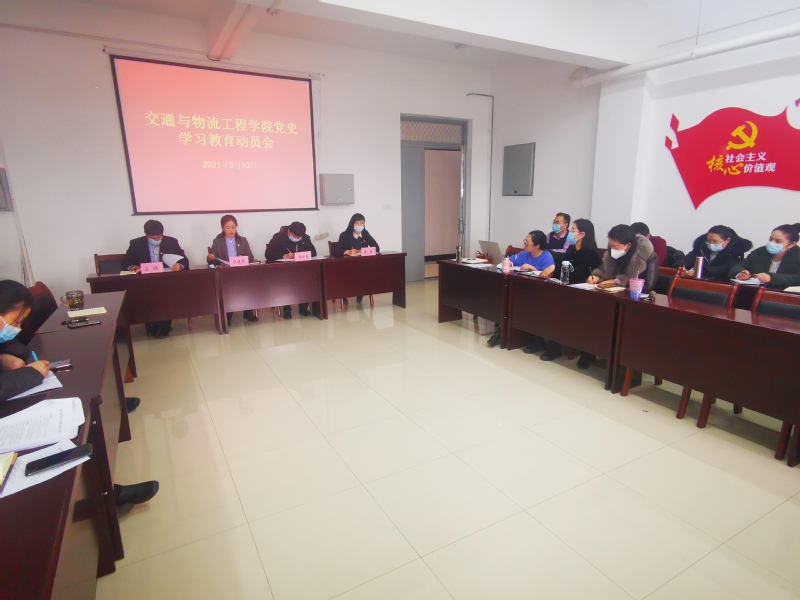 为进一步推进党史学习教育,根据学校党委的工作部署,3月10日,交通与物流工程学院党委召开党史学习教育动员会。学院全体教职工参加会议,会议由学院党委书记杨建莺主持。