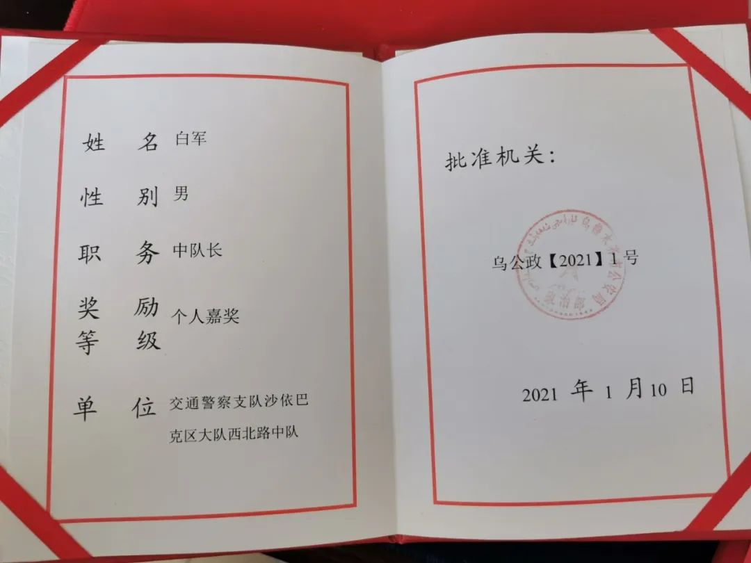 从警17年,获得10余次个人嘉奖,并荣立三等功一次。