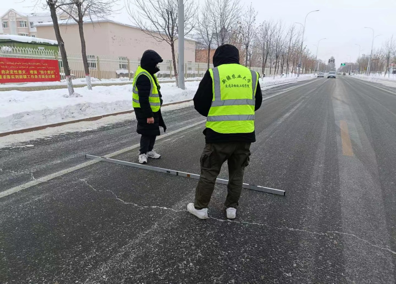 2022年12月17日至23日,交通与物流工程学院党委委员、教工二支部双带头人支部书记、道路工程实验室主任刘尊青老师一行,赴吐鲁番市交通局和阿勒泰地区哈巴河县交通局,就《玄武岩纤维在新疆沥青路面工程中的适应性研究》课题,开展实地调研与科技服务。刘尊青老师在充分总结、吸收国内颁布现行相关规范,同时参考全疆各区气候等条件影响因素以及有关沥青路面丰富的研究成果基础上,结合课题内容,通过实地调研,对比分析试验路段典型病害,提出适用于干旱荒漠地区的玄武岩纤维沥青混合料配合比设计及优化方法。为进一步完善和推进玄武岩纤维在新疆高速公路上的应用作出了重要贡献。