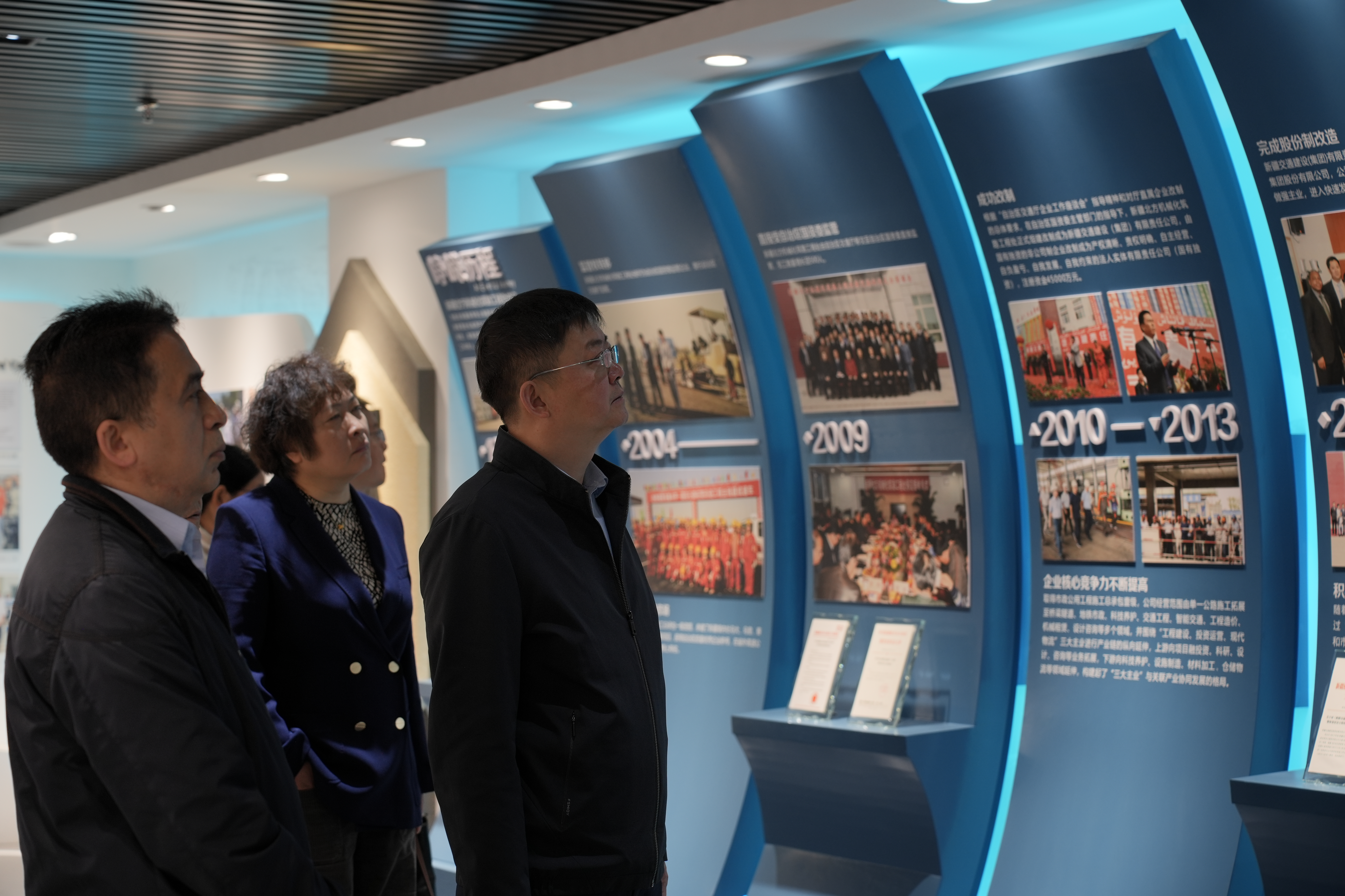 会前谢海巍一行在新疆交通建设集团科技管理部马莲霞部长、人力资源部部长张利萍陪同下参观新疆交建集团企业文化展厅,并听取了集团发展历程及业绩介绍。随后,与会双方开展深入交流。