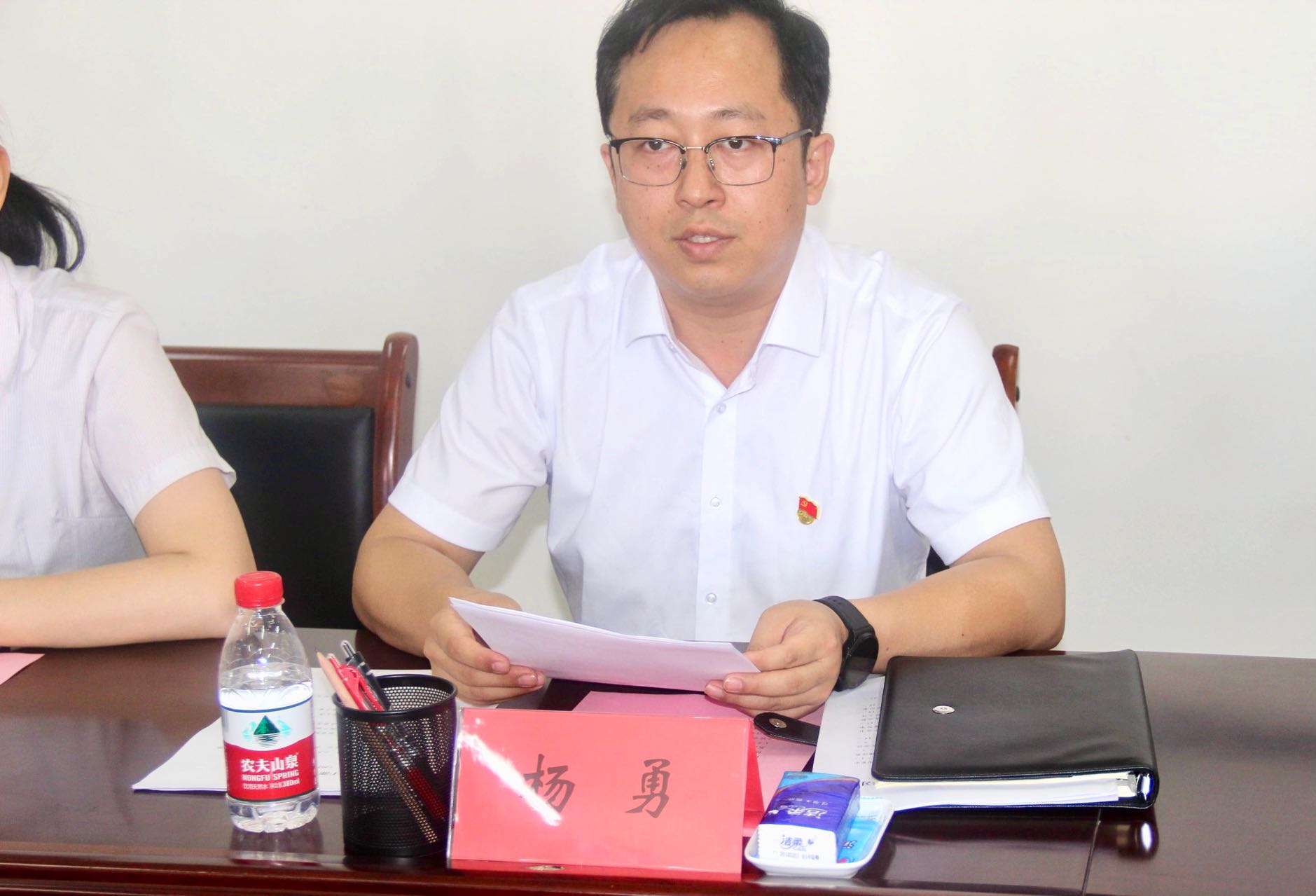杨勇代表班子作表态发言。他表示,为使学院各项工作提质增效,学院领导班子将团结协作,共谋发展。切实把思想和行动统一到习近平新时代中国特色社会主义思想上来,聚焦学校第五次党代会确定的发展目标,以奋进的状态、改革的方法和创新的思路,推进工作落地见效。坚持问题导向,聚焦短板弱项,针对学院面临的种种困难挑战,出实招、破难题、补短板,推动学院发展与学校高质量内涵式发展同频共振。明确工作责任、凝聚发展合力,带领全院师生奋力拼搏、开拓创新。始终做到忠诚干净担当,推进全面从严治党不断深化,营造干事创业、风清气正的良好氛围。