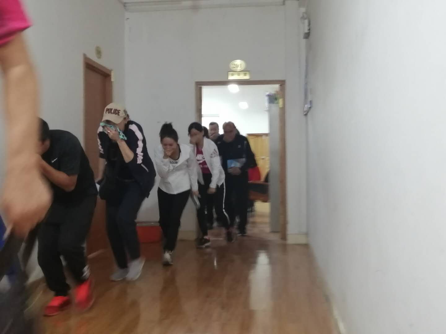 在培训课上,胡教官结合体育部建筑结构及所在地理位置的特点,采用PPT及现场模拟演练相结合的形式生动的讲解当火灾、地震发生时该如何自救及逃生,为教职工讲解了怎样预防火灾,怎样在地震、火灾时自救,如何在报火警时正确的叙述自己所在的位置等。培训内容涉及容易引发火灾的消防安全隐患、电器设施设备的正确使用方式、燃气及电器使用的火情紧急情况处置、鉴别灭火器是否有效和正确的使用方法、火灾应急疏散常识等。