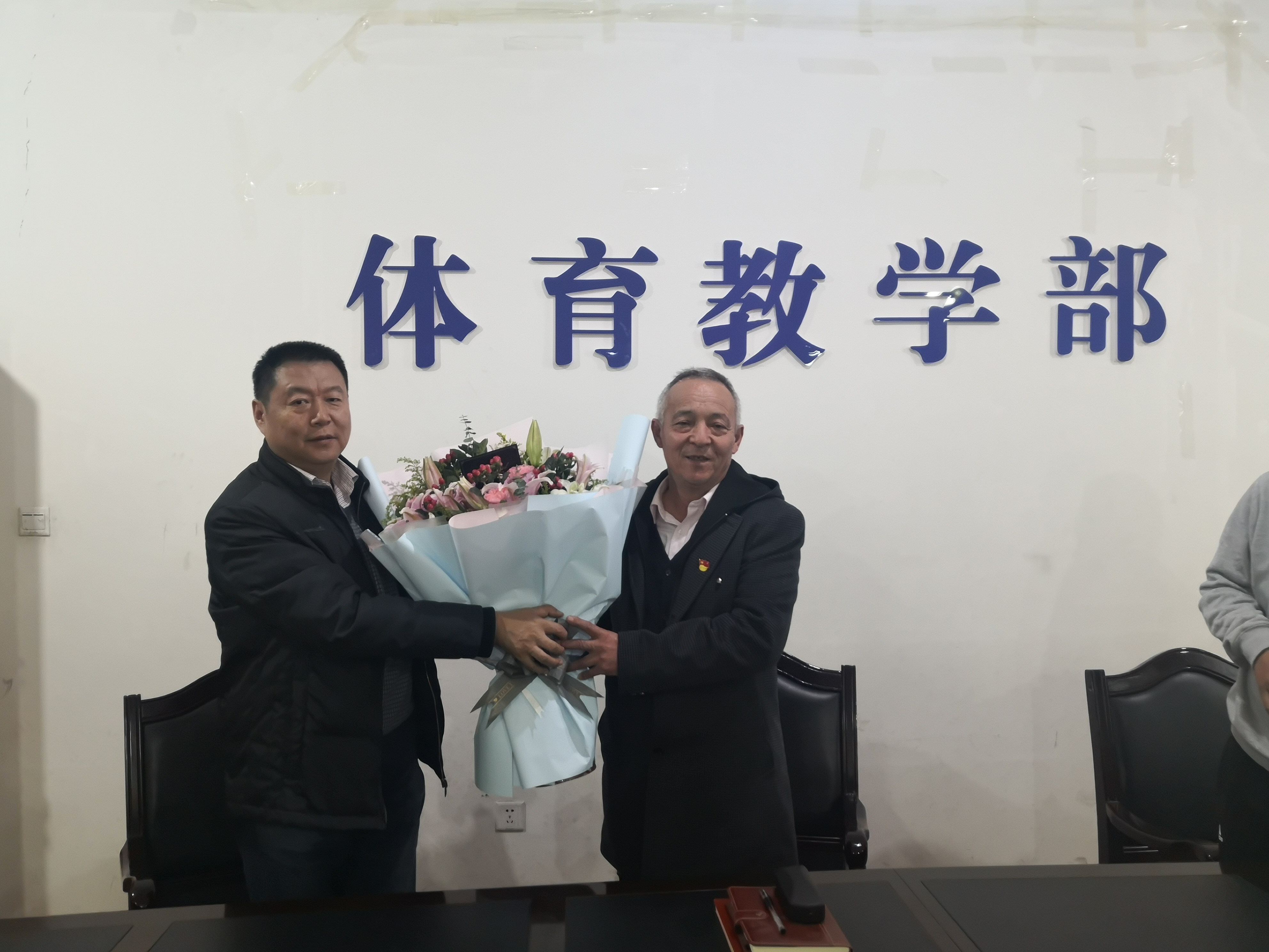 活动起始由阿扎提老师带领所有党员一起回顾了入党誓词,之后由体育教学部唐军副主任为阿扎提老师献花,充分肯定了阿老师为我校体育事业发展做出的贡献,对他多年来的尽职尽责与无私奉献表示诚挚的感谢;希望阿老师老有所乐,享受愉快的退休生活,同时也能一如既往地关心与支持体育部,为体育部的发展献计献策。
