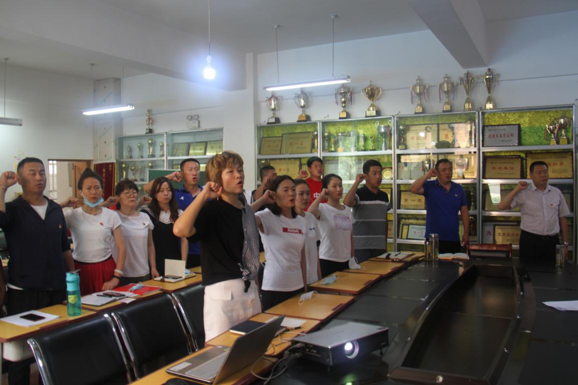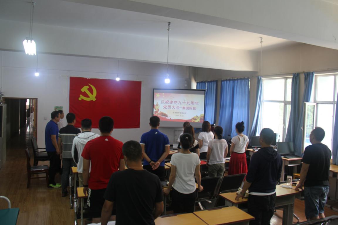 全体党员奏唱国际歌。会议最后,唐军书记做总结发言,他要求全体党员通过今天召开的庆祝大会,在今后的学习和工作中要“不忘初心、牢记使命”,不断深入学习贯彻落实习近平新时代中国特色社会主义思想,落实立德树人根本任务,上好课、教好书、育新人,为培养德智体美劳全面发展的社会主义建设者和接班人这光荣使命贡献自己的力量。