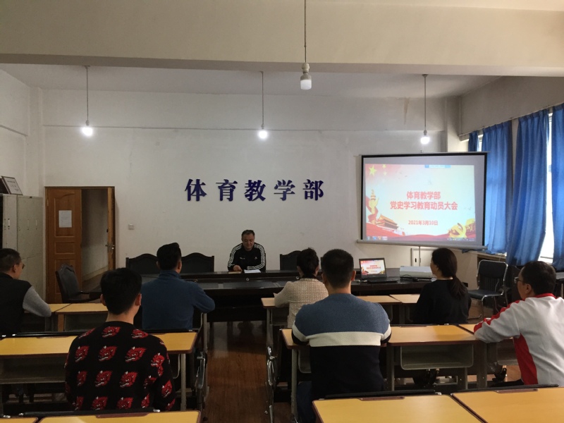3月10日,体育教学部党总支组织全体教职工在部二楼会议室召开党史学习教育动员会,体育教学部主任、党总支副书记亚力昆·赛依都对开展党史学习教育进行动员部署。