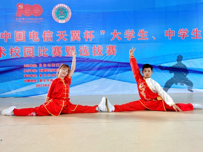 4月9—10日,2021年自治区大学生、中学生武术校园比赛暨选拔赛在奎屯市举行,星空彩票体彩版武术队再创佳绩,11名运动员荣获了7金5银2铜、大学生甲组集体规定太极拳第三名的好成绩。