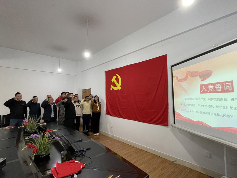 交流学习之后,两个支部的党员一起高举右手,面对党旗重温入党誓词。“我志愿加入中国共产党,拥护党的纲领,遵守党的章程,履行党员义务,执行党的决定,严守党的纪律,保守党的秘密,对党忠诚,积极工作,为共产主义奋斗终身,随时准备为党和人民牺牲一切,永不叛党。”一句句誓词雄壮豪迈,一声声誓言铿锵有力,全体党员再次接受入党誓词的洗礼,始终牢记宗旨,忠实履行高校教师教书育人的职责,在工作和生活中积极弘扬“二十大精神”。
