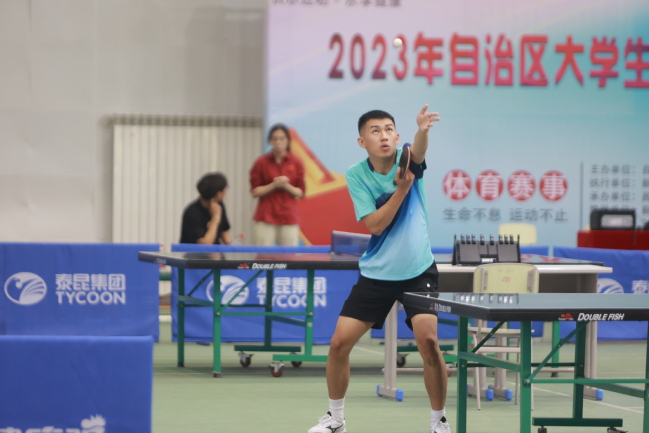 7月16日至19日,由自治区教育厅主办的2023年自治区大学生、中学生“泰昆杯”乒乓球联赛在昌吉学院举行,星空彩票体彩版由刘恒老师带领12名学生参赛。