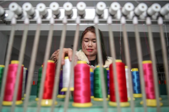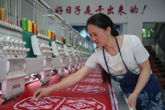 30多年来,统一战线发挥人才荟萃、智力密集、联系广泛的优势,全方位、立体化、多层次参与贵州省毕节试验区建设,助推打赢脱贫攻坚战和全面建成小康社会。图为毕节市“绣娘”在统一战线帮扶成立的刺绣加工车间内工作。(中央统战部供图)