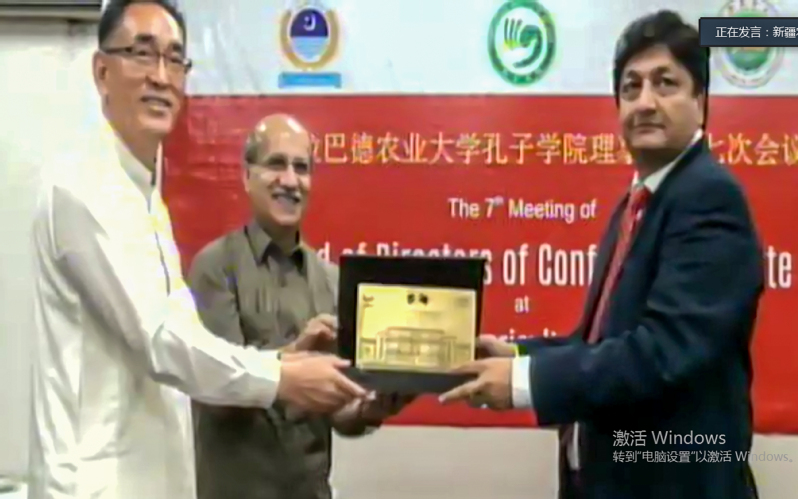 开幕式结束后,我校与费萨拉巴德农业大学合作7周年视频会议召开。双方参会人员通过短视频回顾了两校合作7年里的高光时刻。费萨拉巴德农业大学科研创新处处长、孔子学院理事会外方副理事长扎希尔·艾哈迈德·扎希尔聚焦中巴农业合作,以中巴潜在的合作领域为主题做了科研汇报;我校科研管理处副处长颜安就近年来两校科研合作情况作了交流成果汇报。费萨拉巴德农业大学孔子学院中方院长周常明和孔子学院理事会外方副理事长代表孔子学院分别向两校赠送了合作7周年纪念牌。