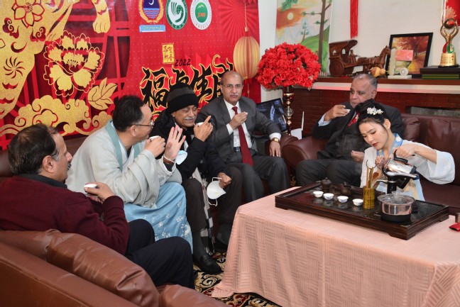 品茶之余,客人们还应邀观赏了精选的中国传统文化节目视频《秋月稷》《龙舟祭》《唐宫夜宴》《纸扇书生》《大唐行者》《远古的呼唤》,精彩的节目及现场的解说让客人们对中国文化的深厚底蕴赞叹不已。