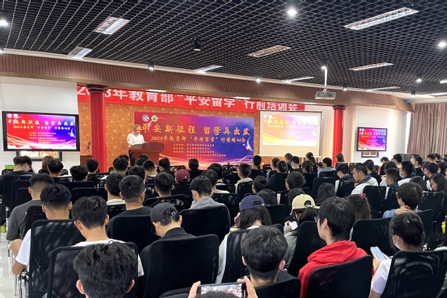 为贯彻落实党的二十大精神和全国教育大会精神,不断提高和完善留学工作管理和服务水平,提升广大留学人员在国外的安全意识和适应能力,实现平安留学、健康留学、文明留学、成功留学,5月14日,由教育部国际合作与交流司主办、教育部留学服务中心承办、自治区教育厅、自治区教育国际交流协会以及我校协办的2023年教育部“平安留学”行前培训会在我校国际教育学院多功能厅举办。