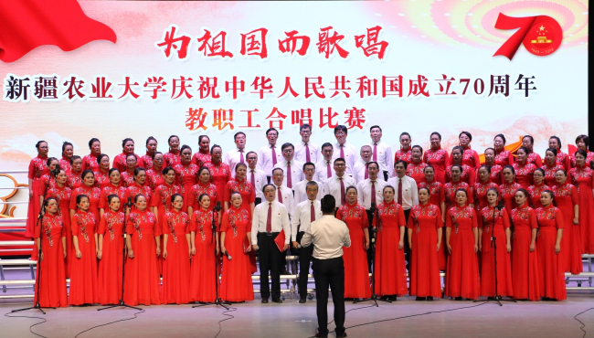 外国语学院和管理学院的教职工身穿精美演出服,怀揣对祖国的热爱和赞美,对美好生活的向往放声歌唱。《天路》《共筑中国梦》两首满含深情的歌曲、打动人心的旋律,表达了一代又一代农大人的矢志不渝奋斗的梦想,抒发农大人爱党爱国的共同心声。