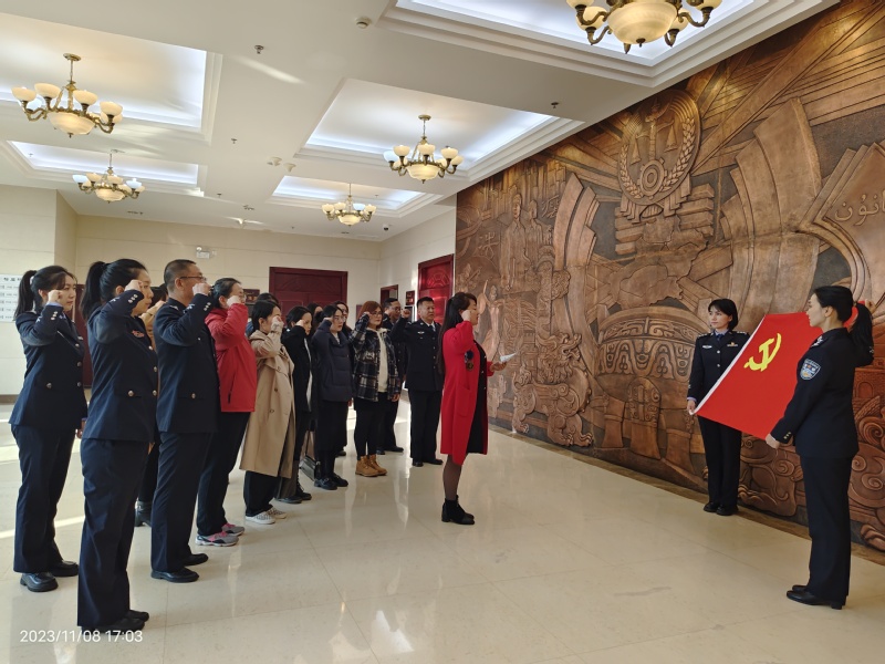 最后,全体党员在支部书记王婷同志的带领下,面向党旗重温入党誓词。